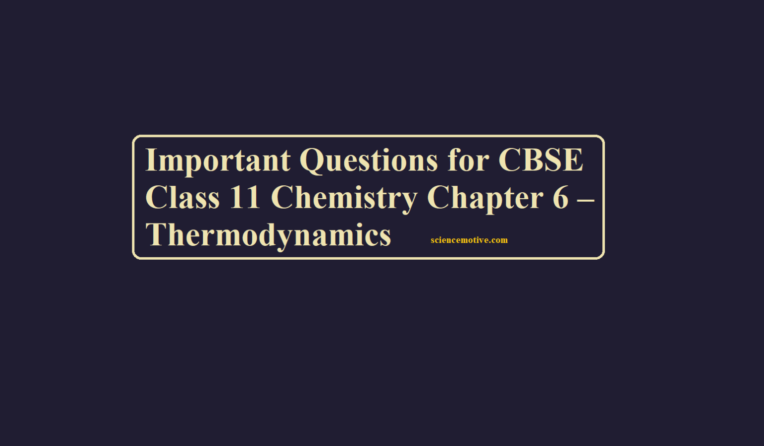 CBSE Class 11 Chemistry Chapter-6 Important Questions Class 11 Chemistry Chapter-6 Que 1. Neither q nor w is a state function but q + w is a state function. Explain. Ans 1. Both q and W are not state functions but q + W is equal to ΔU which is a state function. Que 2. A gas absorbs 200 J of heat and expands against the external pressure of 1.5 atm from a volume of 0.5 litres. Calculate the change in internal energy. Ans 2. w = – PΔV = – 1.5 × (1.0 – 0.5) = – 0.75 litre…