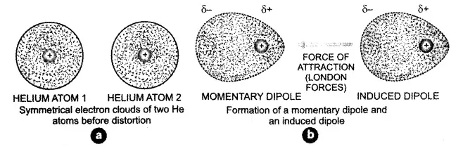 Forces of attraction between momentary dipoles and induced dipoles (London forces) in Helium atoms
