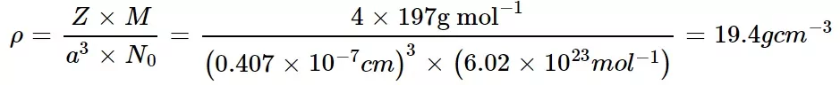 Que 2. Gold (Au) crystallizes in cubic close-packed (FCC). The atomic radius of gold is 144 pm and the atomic mass of Au = 197.0 amu. The density of Au is:
