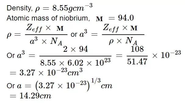 Que 43. Niobium crystallizes in a body-centred cubic structure. If density. If the density is 8.55 g/cm, calculate the atomic radius of niobium using its atomic mass of 93 u.