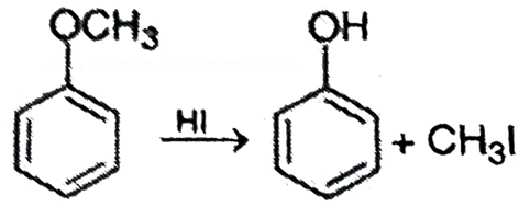 Que 4. Write the structure of the products formed when anisole is treated with HI.