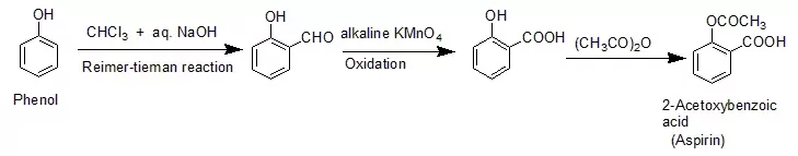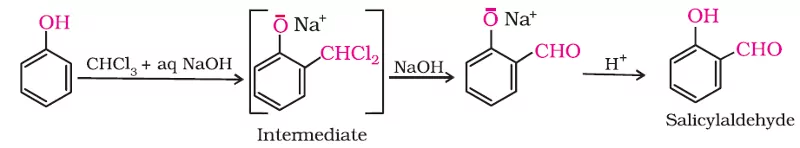 Ans 7. When phenol is treated with sodium hydroxide, sodium phenoxide is produced. This sodium phenoxide when treated with carbon dioxide, followed by acidification, undergoes electrophilic substitution to give ortho-hydroxybenzoic acid as the main product. This reaction is known as Kolbe’s reaction.
